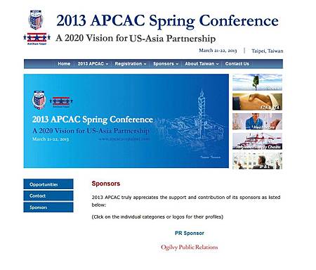 睽違二十年之久,台北市美國商會(AmCham Taipei)將於3月21、22日主辦2013年亞太區美國商會年度大會(APCAC Spring Conference)。除了眾多企業的支持外,今年奧美公關也贊助台北市美國商會,建議公關媒體曝光策略,協助舉辦記者會與現場媒體招待,及採訪安排,提供專業的公關顧問服務。